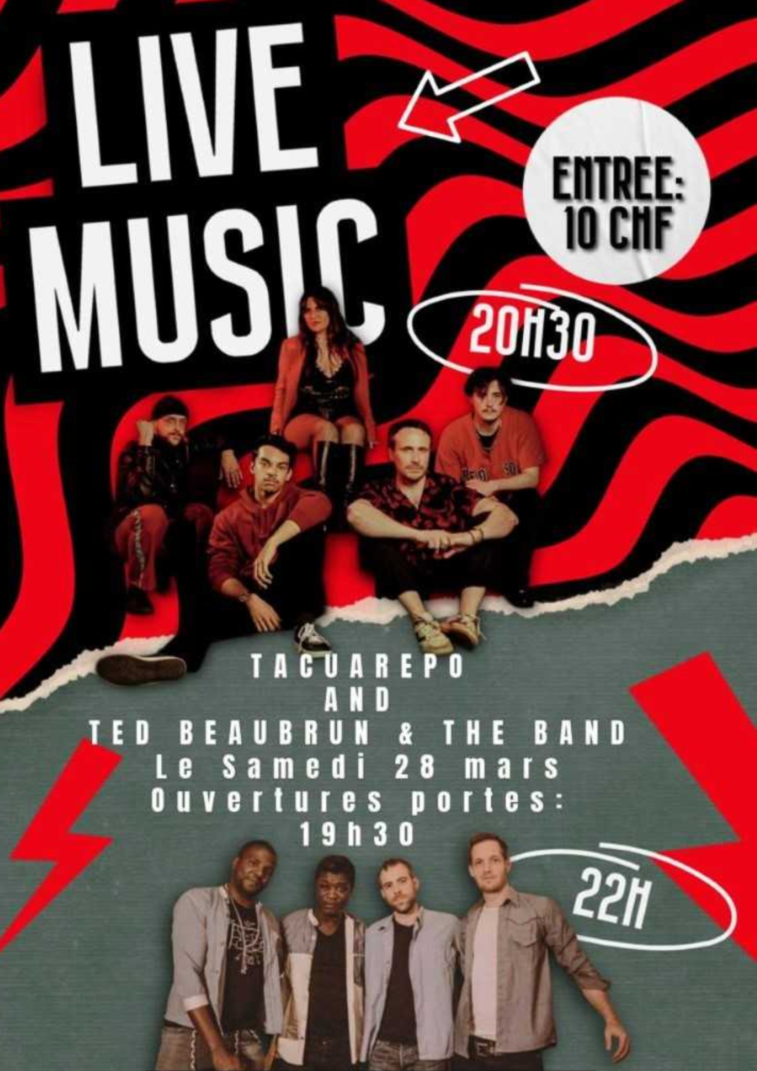 Billetterie et infos sur https://infomaniak.events/fr-ch/shop/tacuarepo-ted-beaubrun-the-band-KVYYTS4EF7