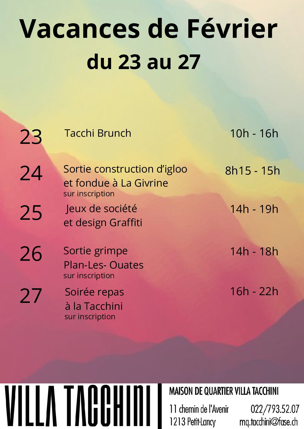 Pour les sorties, venez chercher les feuilles d’inscriptions à la Villa Tacchini